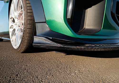 形状を考えられたフロントリップは、エアロパーツとしての整流性能はもちろん、