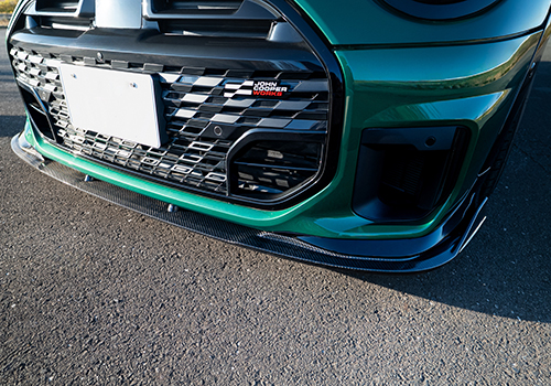 形状を考えられたフロントリップは、エアロパーツとしての整流性能はもちろん、